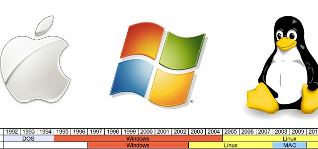 Швидкоруч вирішив підсумувати інформацію стосовно використання операційних систем, що я були в мене на десктопах\ноутбуках за весь час (картинка зверху). А також викласти деякі моменти використання основних операційних систем для звичайного користувача. Інформація базується на власних спостереженнях (картинка внизу): * починаючи з ХР ** починаючи з Ubuntu 6.06 та Fedora 8